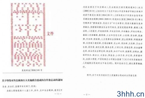 《关于印发对失信被执行人实施联合惩戒的合作备忘录的通知》(下称《备忘录》)