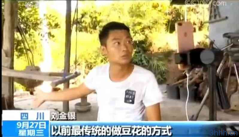 磨好的豆浆在刘金银奶奶的手中逐渐成型为豆花,父亲则负责调制佐料。从最开始的黄豆到端上饭桌的豆花,几个小时中,网友们看到了黄豆从食材到豆花的转换过程。